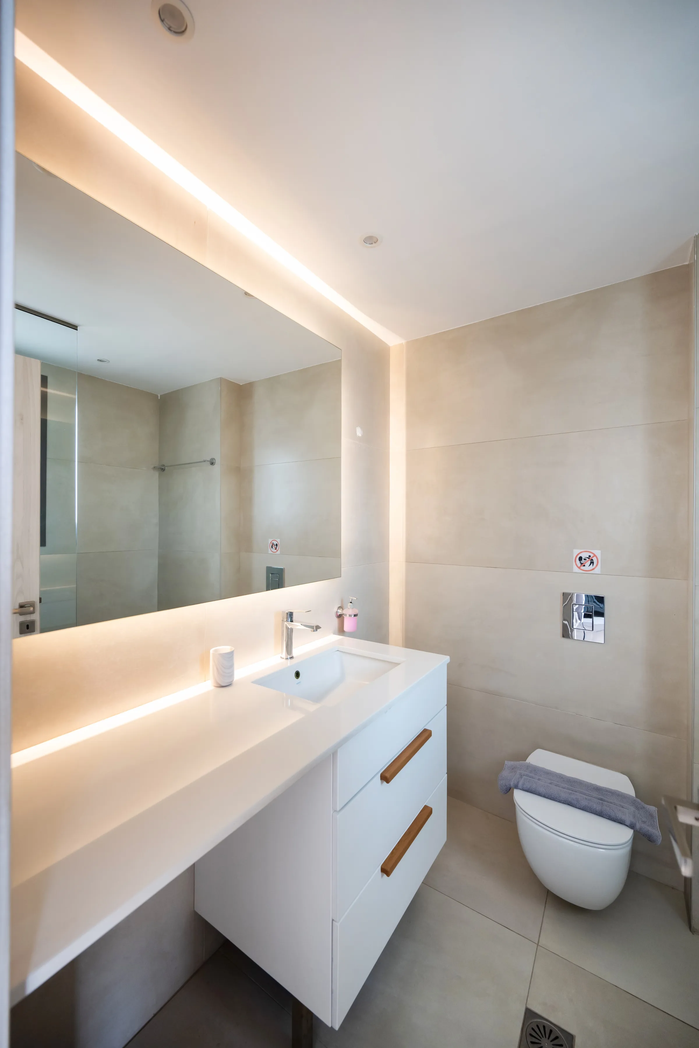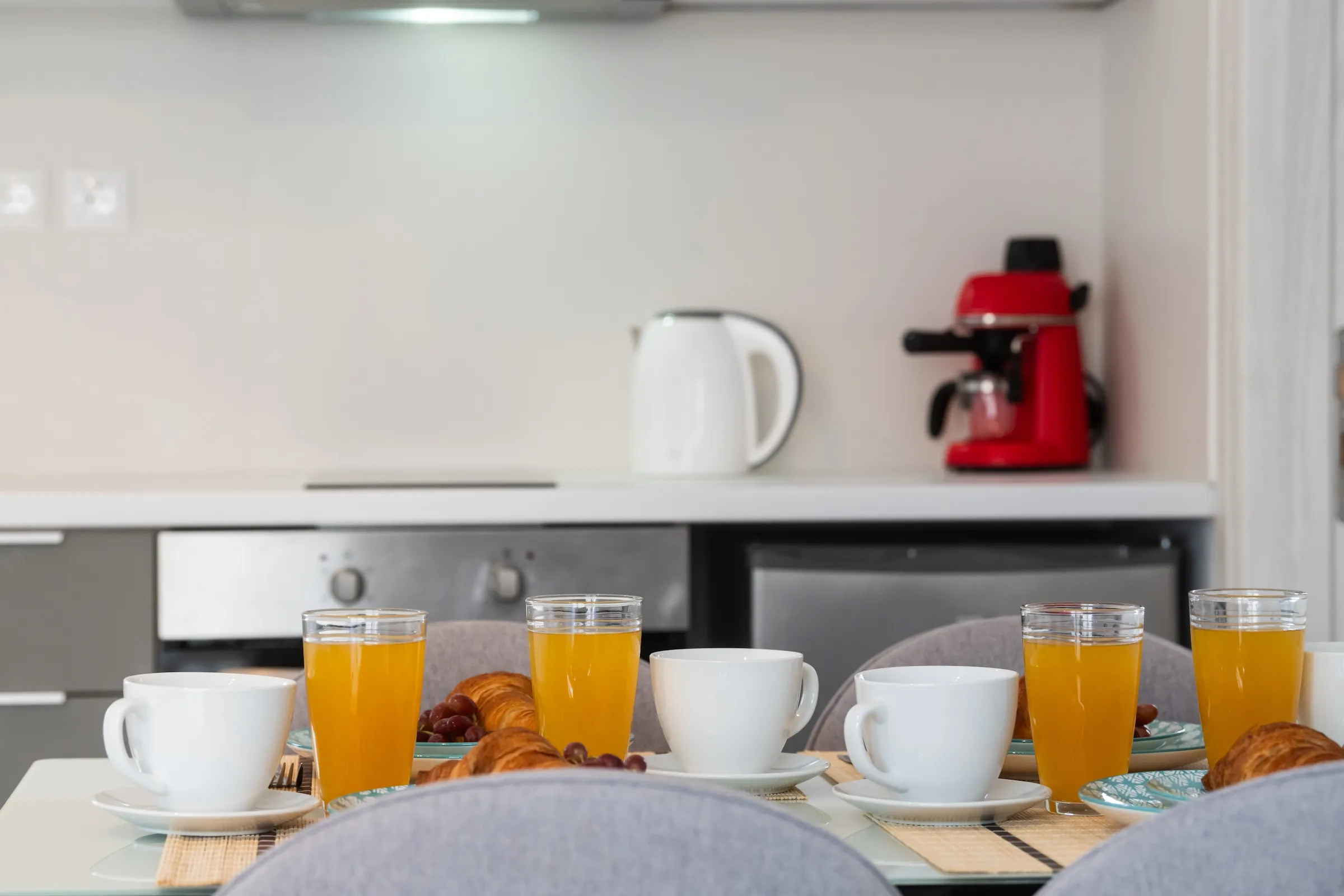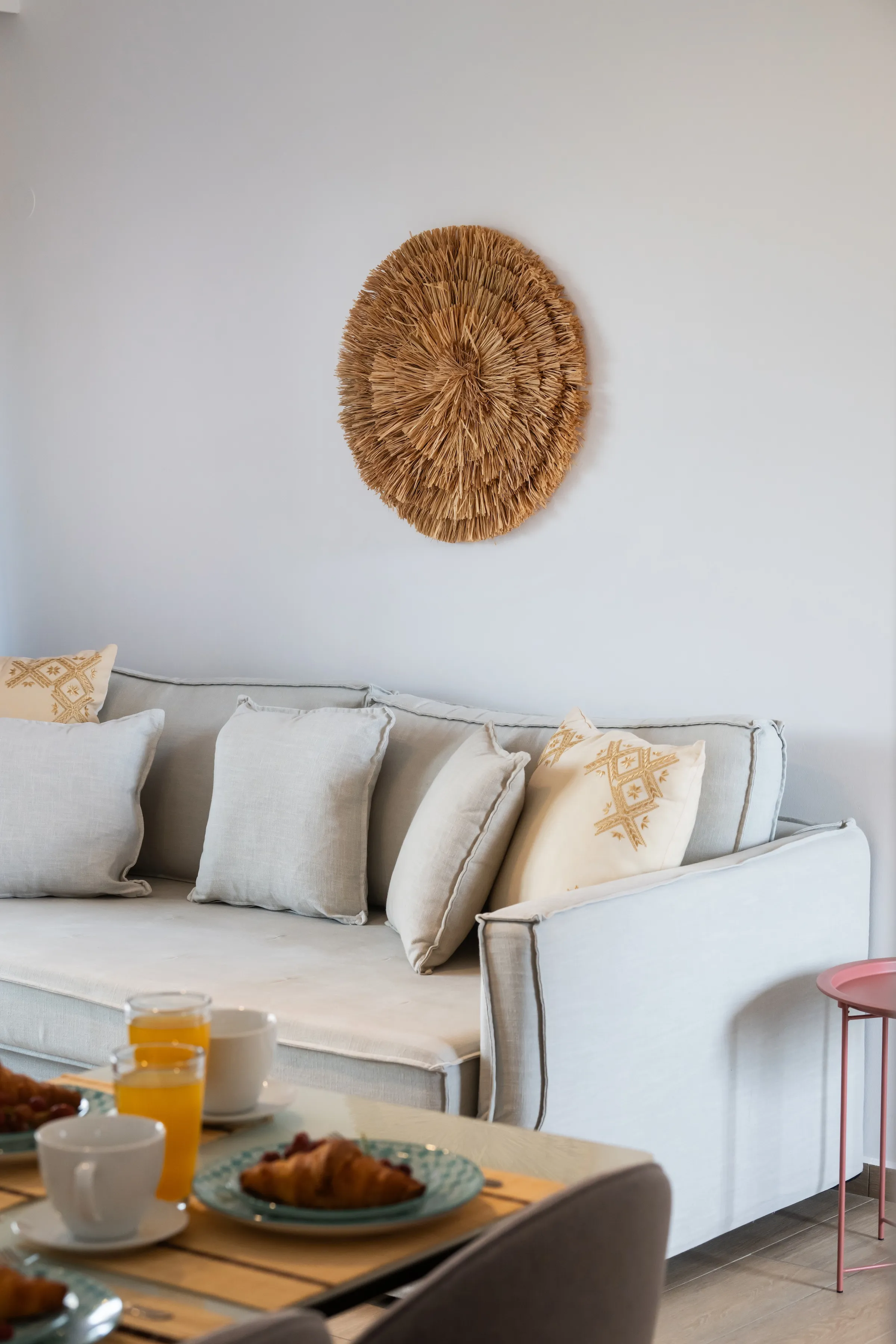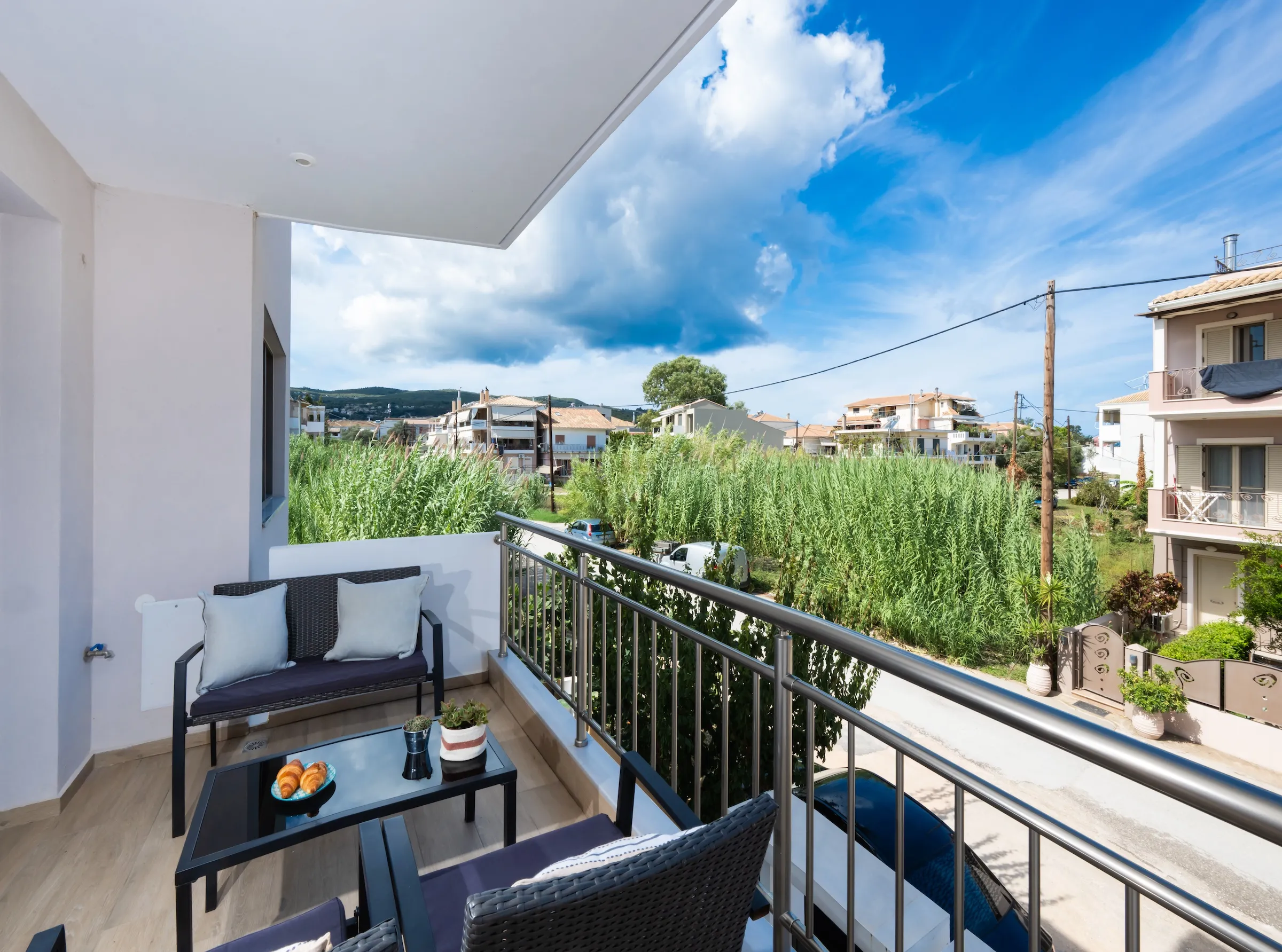 Το καθιστικό είναι φωτεινό και λειτουργικό, ιδανικό για χαλάρωση ή κοινό χρόνο, ενώ η πλήρως εξοπλισμένη κουζίνα καλύπτει όλες τις ανάγκες μιας αυτόνομης διαμονής. Το ιδιωτικό μπαλκόνι με θέα στην πόλη προσφέρει έναν επιπλέον χώρο χαλάρωσης κατά τη διάρκεια της ημέρας.