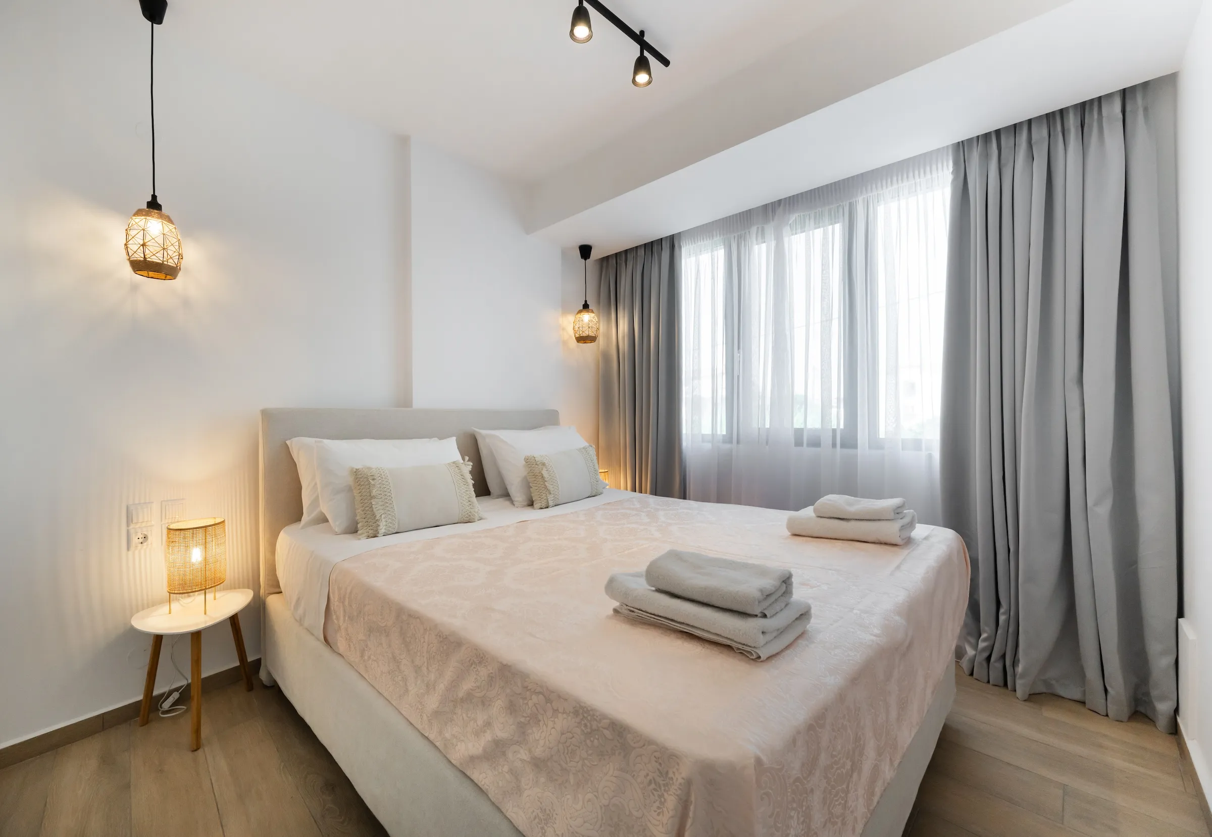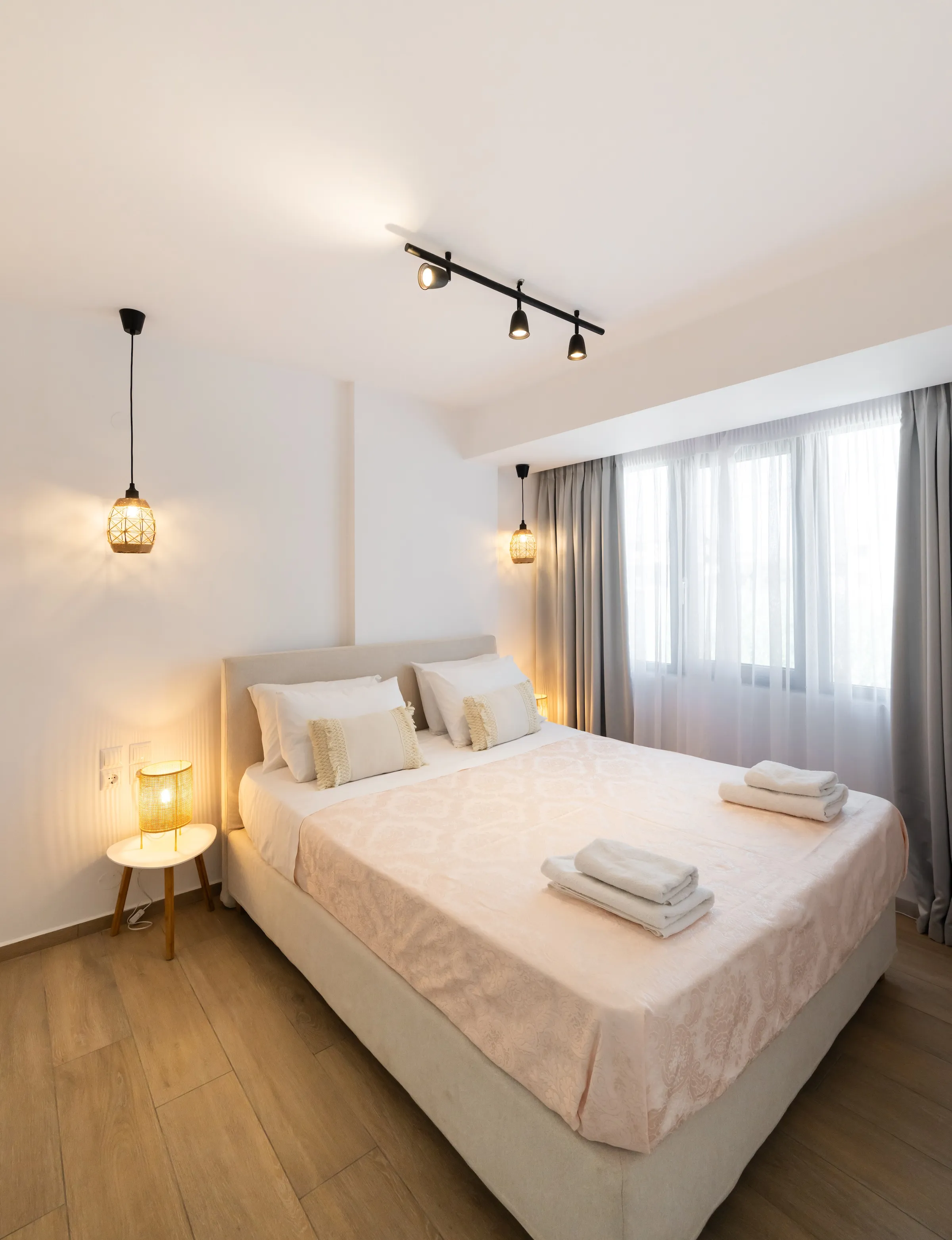 Ιδανικό για οικογένειες ή παρέες, το Α4 Διαμέρισμα προσφέρει άνεση και σωστή κατανομή χώρων. Τα δύο υπνοδωμάτια είναι ευρύχωρα, με άνετα κρεβάτια και ποιοτικό ιματισμό, εξασφαλίζοντας ξεκούραστο ύπνο για όλους τους επισκέπτες.